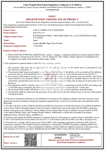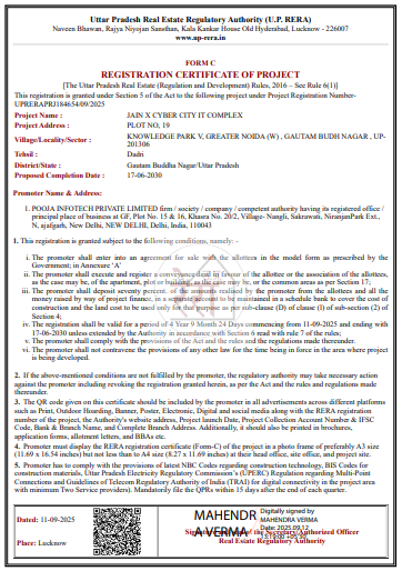 Experience luxurious living at Jainx Cyber City IT Complex, a premier residential project located in the thriving area of Knowledge Park V, Greater Noida. These luxury residences offer a perfect blend of comfort, style, and convenience.